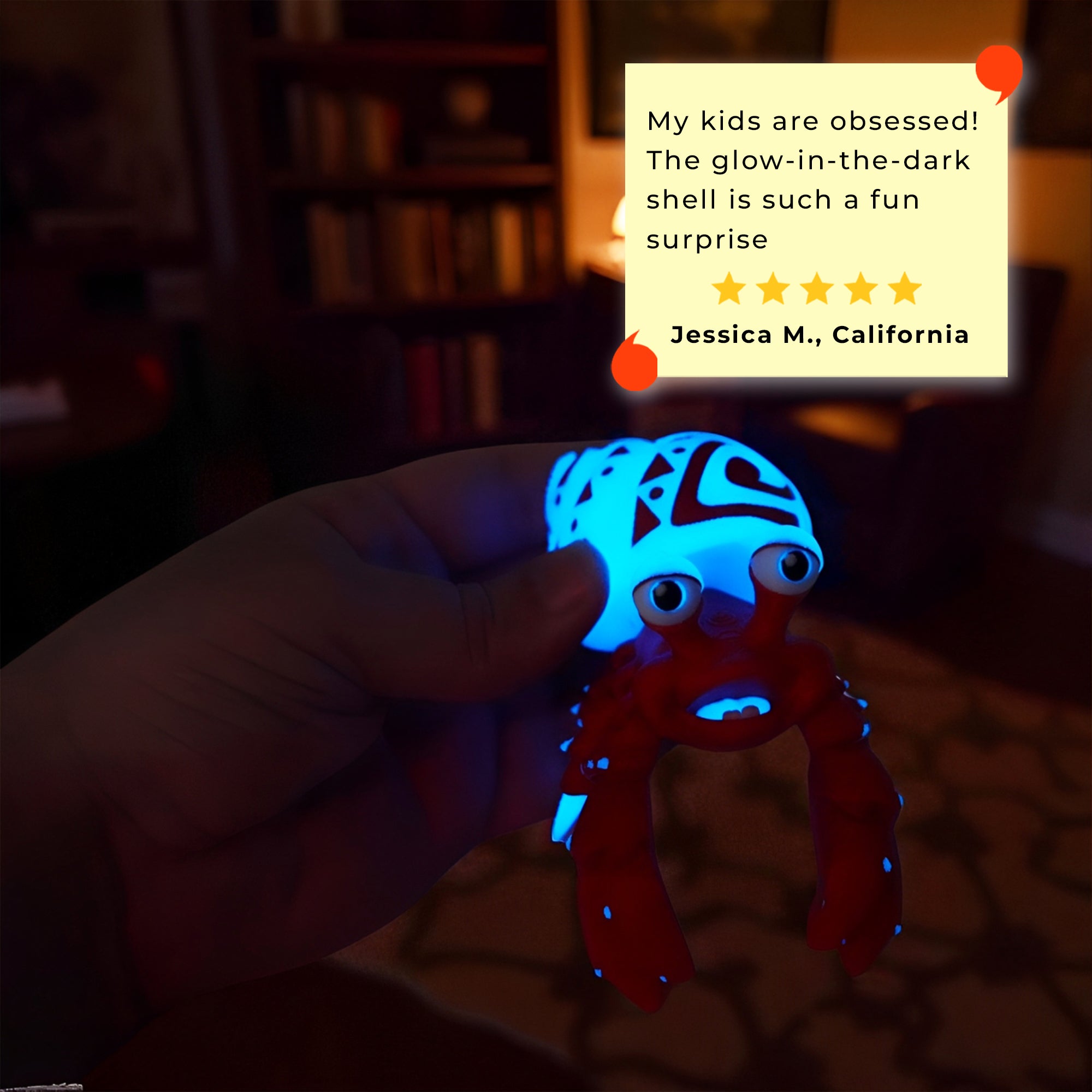 Make waves with this fierce little crab that's big on character! Crafted with precision and packed with glow, this Glow-in-the-Dark Articulated Crab is a sea loverās dream come true.