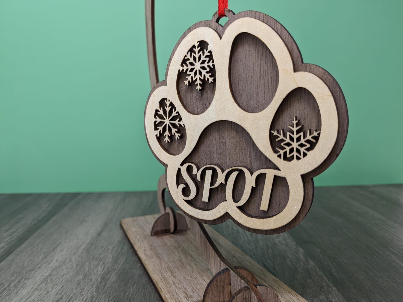 Crafted with a basswood front and elegant walnut backing, this ornament measures 4.5” x 4.25” and is a timeless keepsake to remember your pet's love. Customize it with your pet’s name for a unique touch, and add optional engraving on the back for just $5 more.