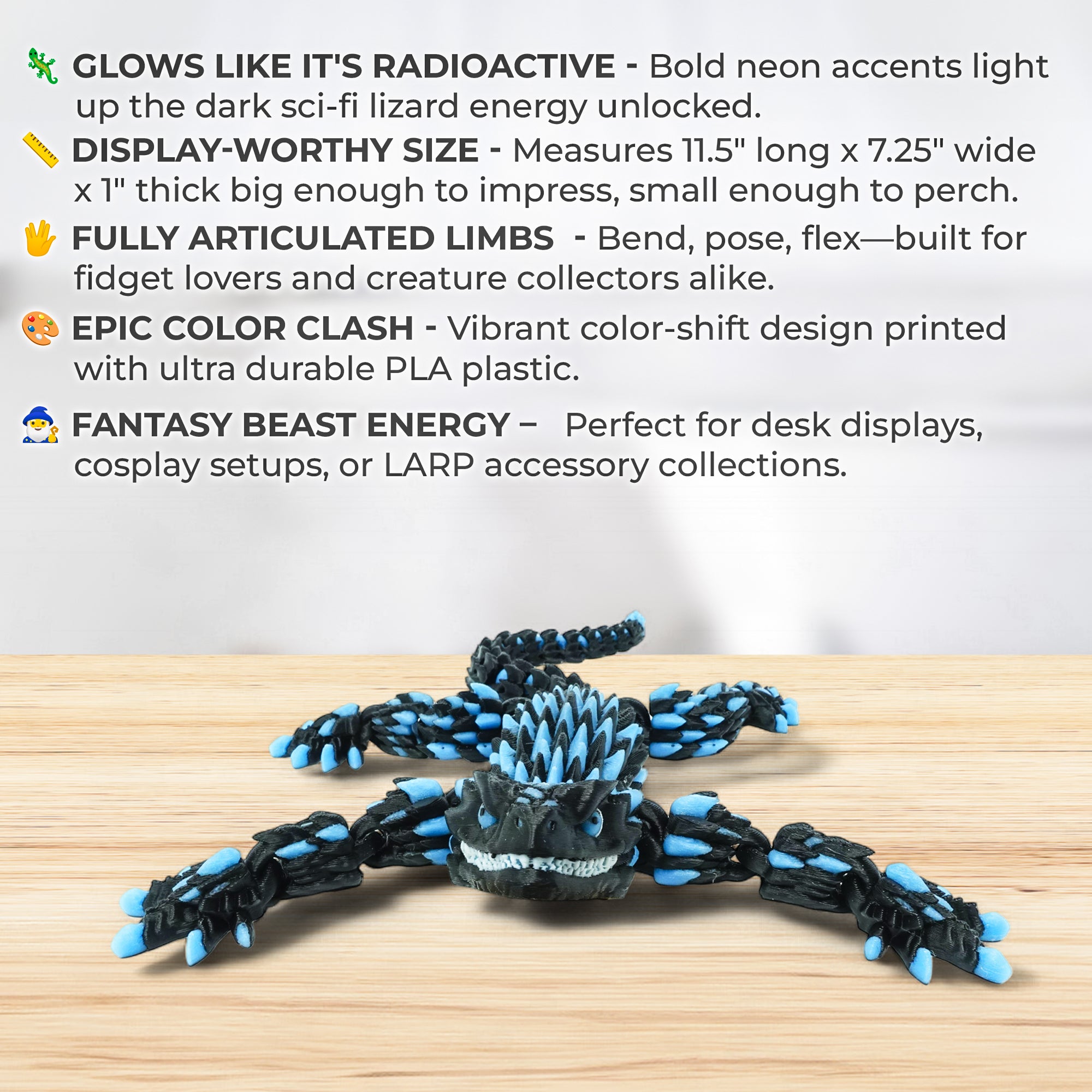 Bring home a creature that shines in the dark and moves like magic. This Glow Lizard isnβt just a toy β itβs a fierce collectible for dragon lovers, fantasy fans, and anyone who loves unique creatures.