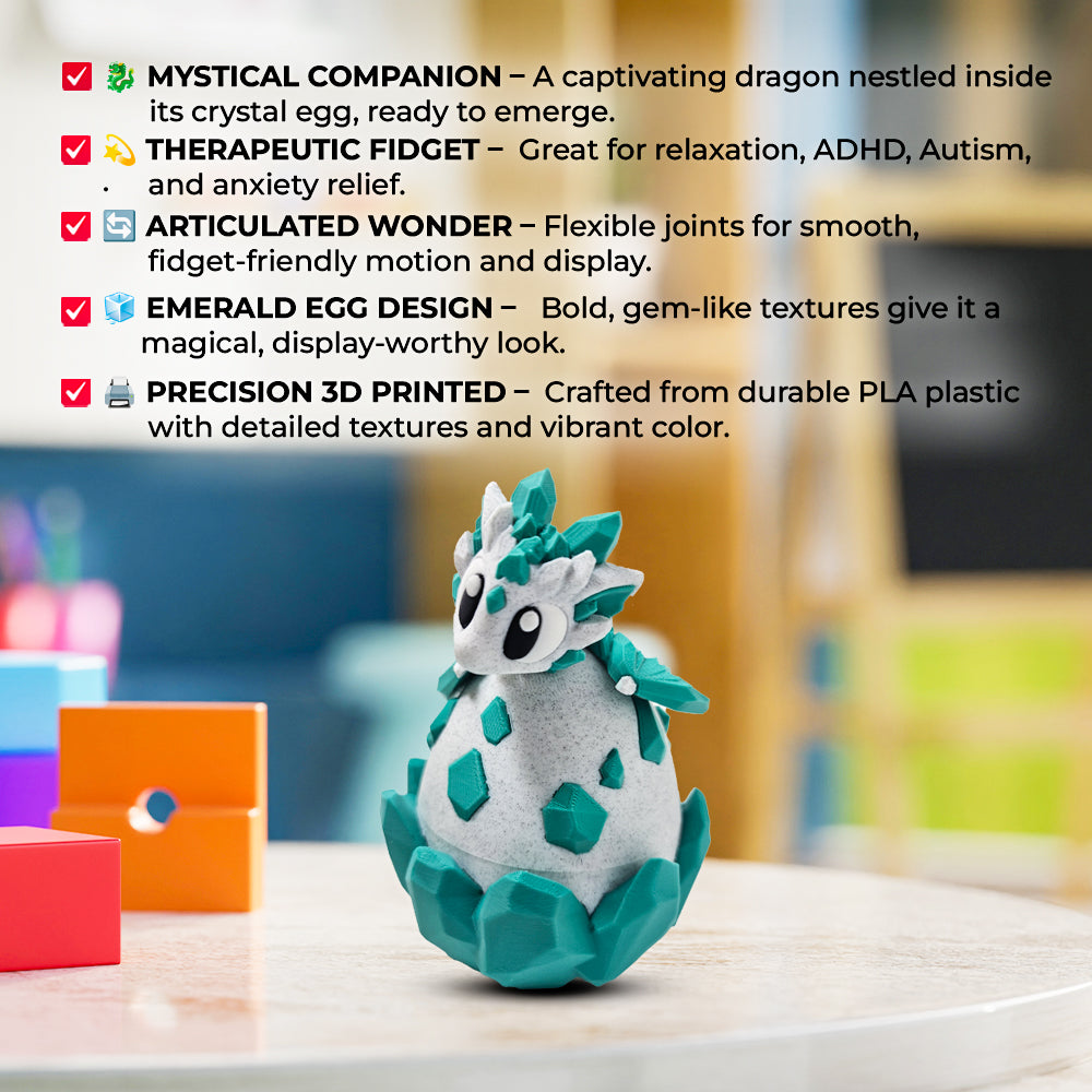 Meet the Jade Crystal Dragon, a mystical companion nestled inside a gem-like emerald egg. With smooth articulation and stunning detail, this dragon is perfect for fantasy lovers, fidgeters, and collectors alike.