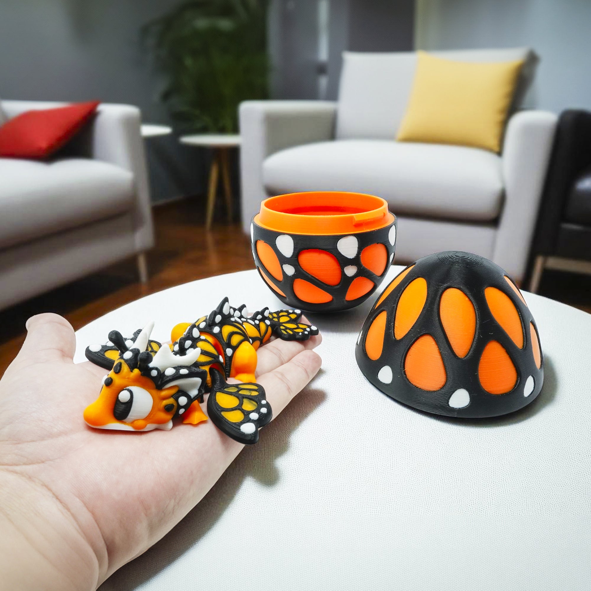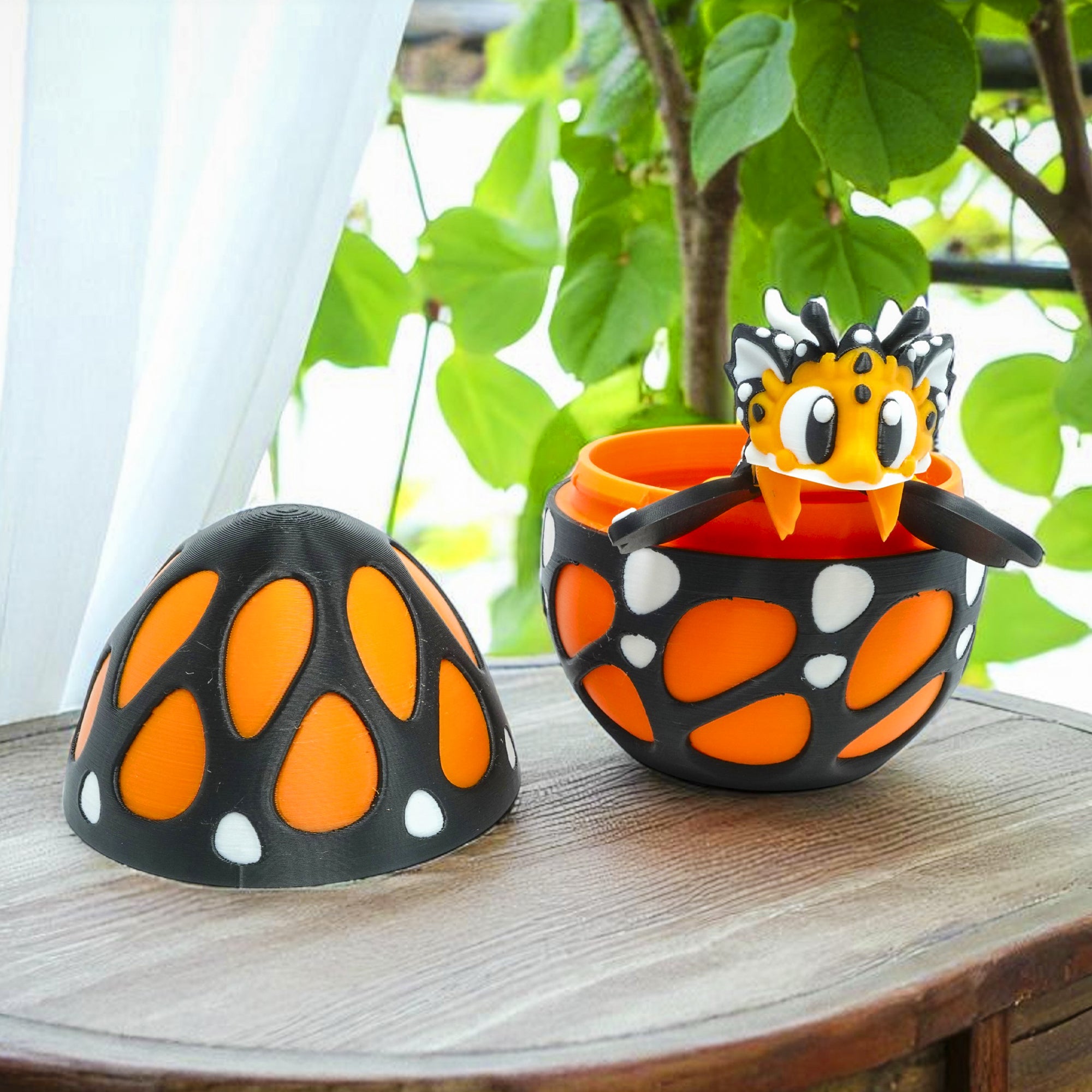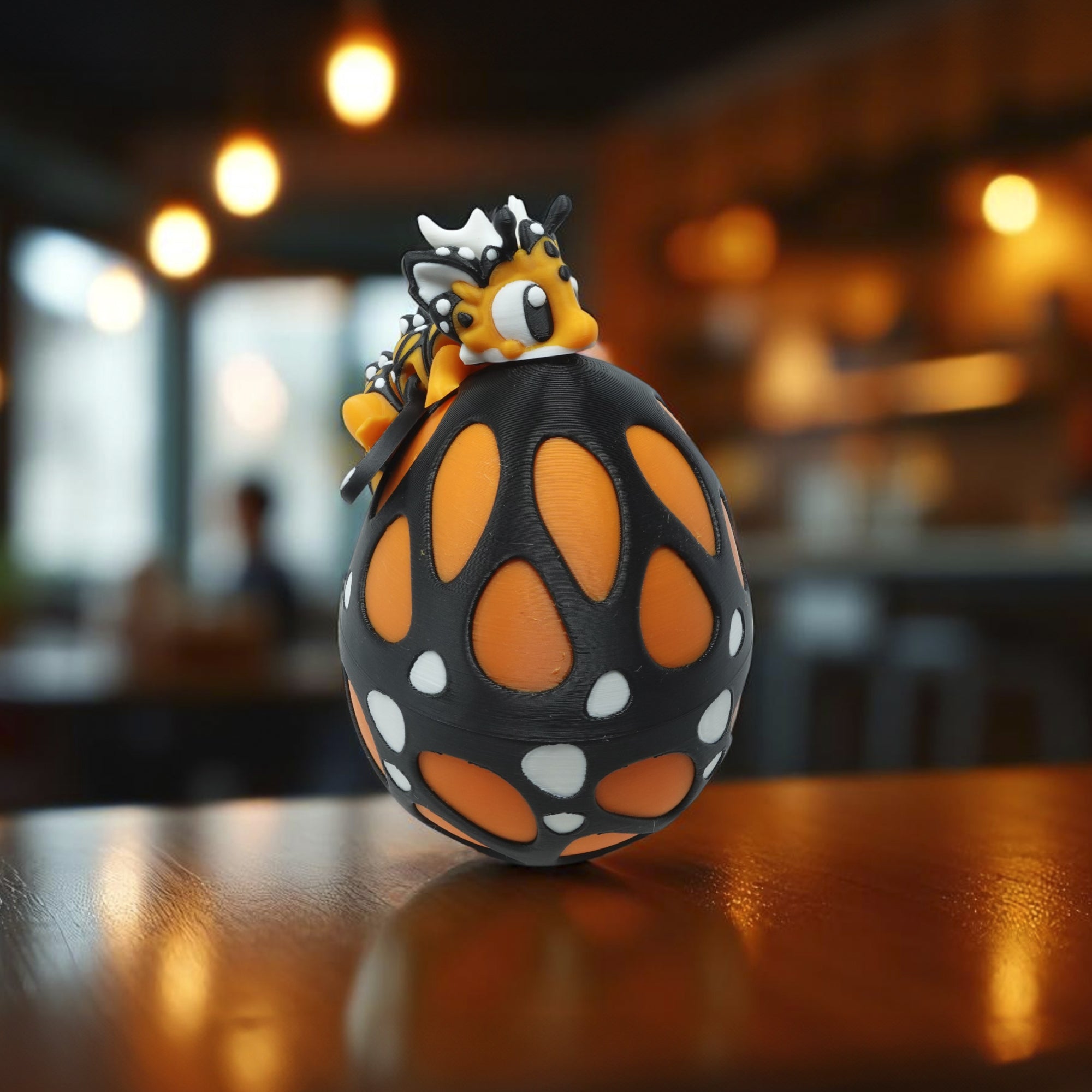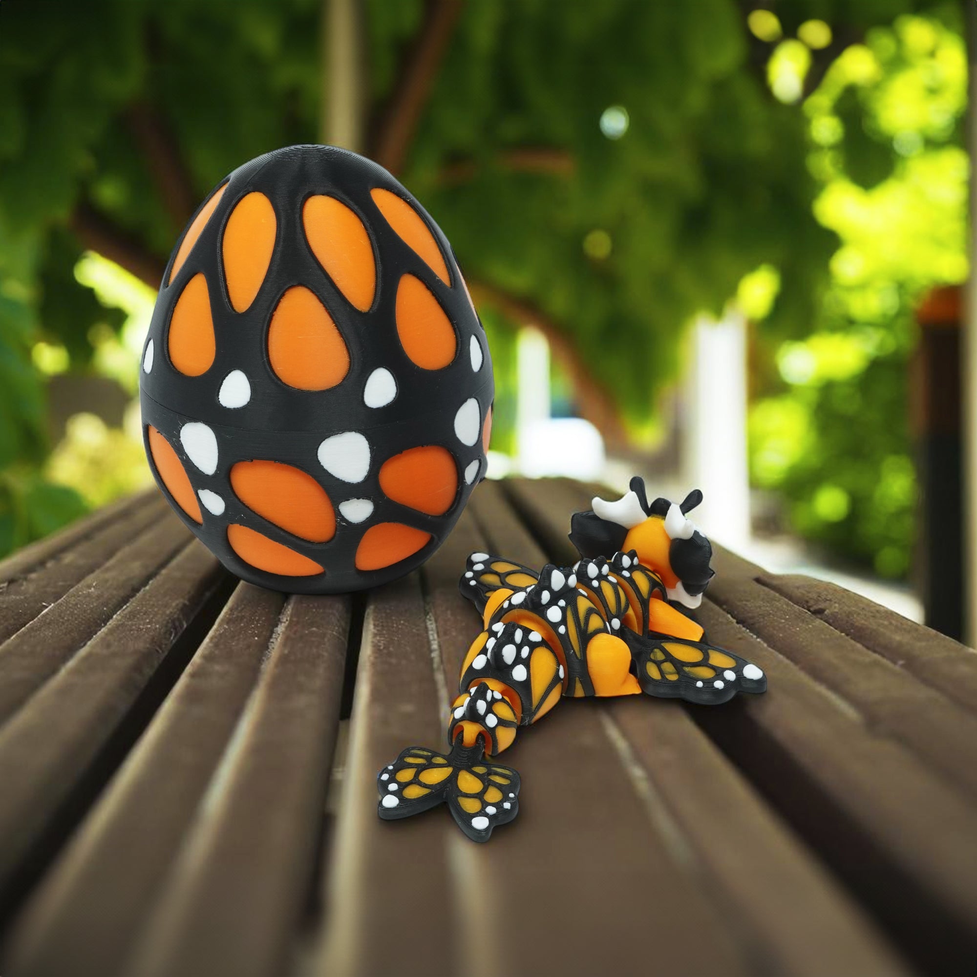 Butterfly-Kissed Egg โ Hatching from a cocoon of monarch wing patterns, this dragon is a celebration of transformation and beauty.