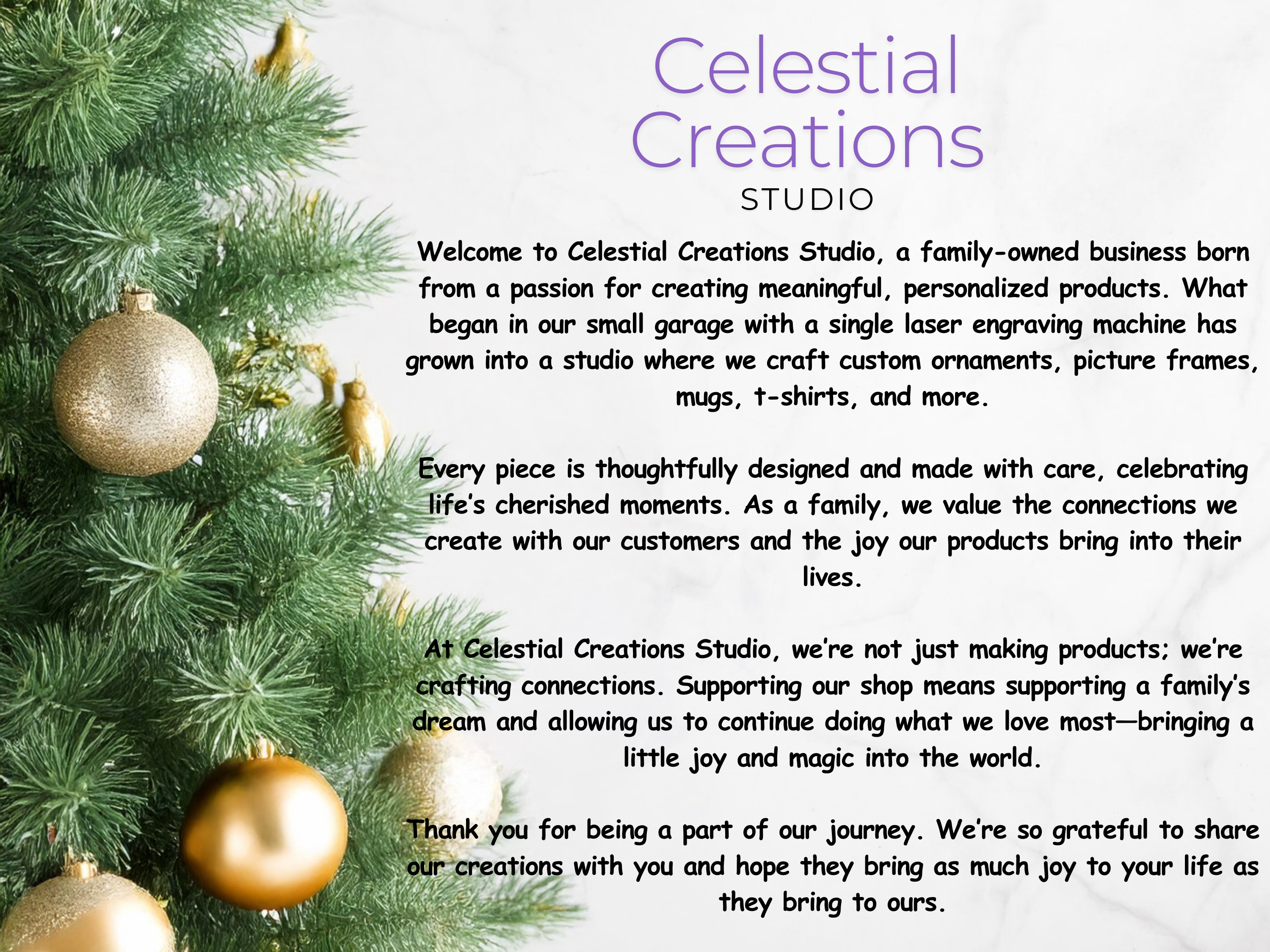 Looking to make it more special? For just $5 extra, we can customize the back with your family name, a date, or a meaningful message, turning this ornament into a one-of-a-kind keepsake.