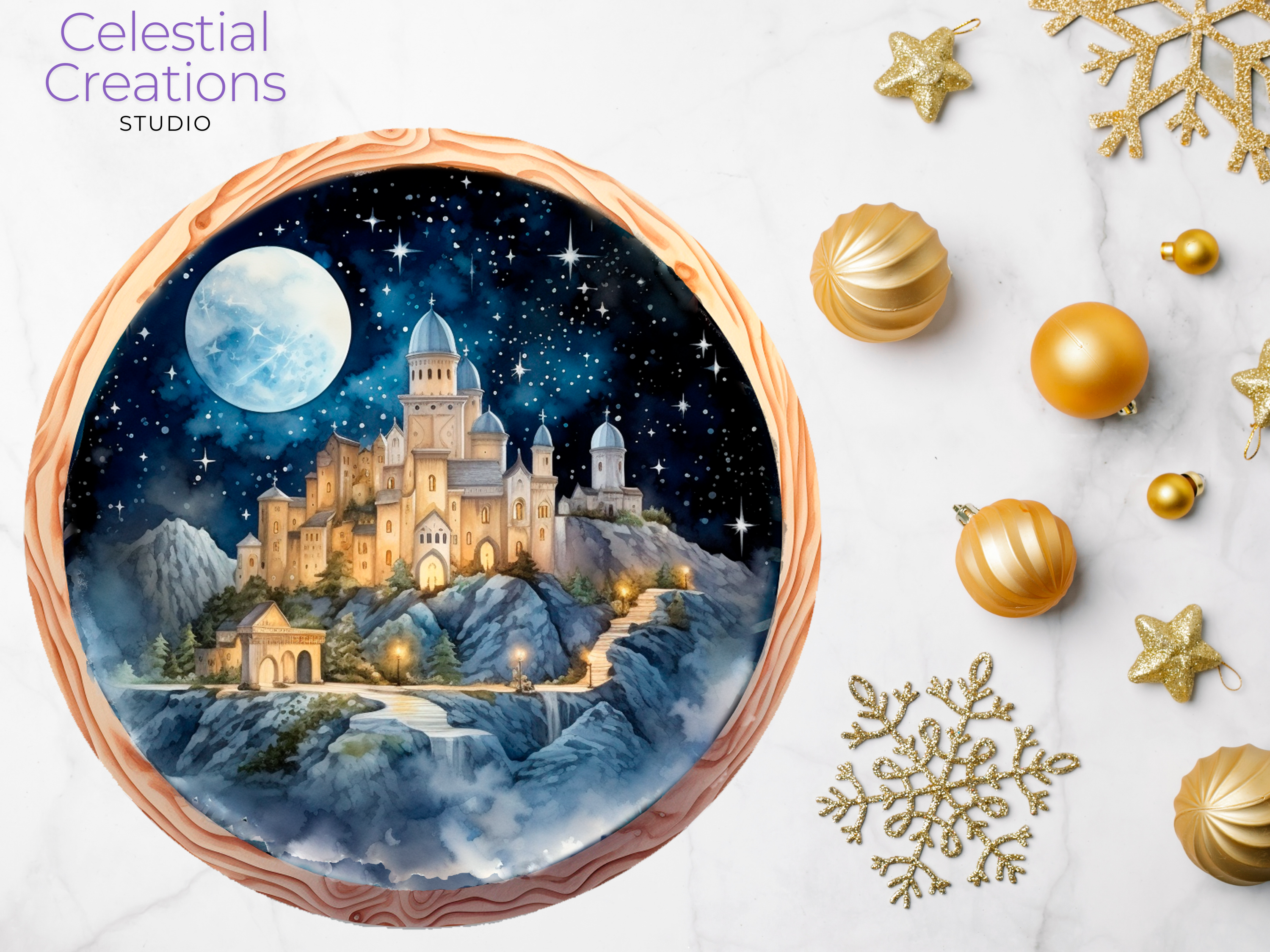 1. 3-Inch Ceramic Ornaments: Made from durable ceramic, with a vibrant nativity scene printed on the front side.